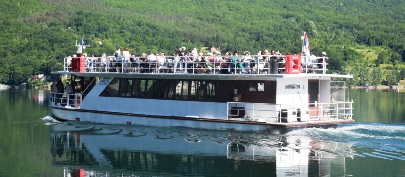 После зимског сна, који је трајао нешто краће него ранијих година, брод „Гризли“ из Туристичке агенције „Таратурс“ Горана Глишића, половином априла обавио је прво овогодишње крстарење језером Перућац. Кренуо је из сидришта, недалеко од бране Хидроелектране „Бајина Башта“, на пут дуг 104 километра до Вишеграда и натраг. У вишесатној вожњи кроз дрински кањон, спада међу три највећа на свету, уживало је 70 туриста. Већина их је била из иностранства, Најбројнији су били Пољаци, Словенци, Хрвати, Руси и Украјинци. Власник Агенције „Таратурс“ Горан Глишић истиче да је у протеклих осам година „Гризли“ имао много крстарења са неколико хиљада туриста из Србије и још 45 других земаља. До краја априла планирано је још неколико вожњи.Велики интерес влада за првомајске празнике кад ће на програму бити три крстарења, свако са око 150 туриста. Крстарење „Гризлијем“ је прелеп доживљај па није ни чудо што се током вишемесечне пловне сезоне, нарочитом викендом, тражи карта више. По многима ово је , уз регату,и најлепши туристички садржај кога нуди бајинобаштански крај. У „Таратурсу“ кажу да је све популарнија „мала тура“ од два сата крстарења језером Перућац укупне дужине 16 километара.