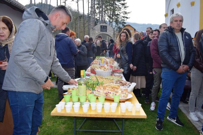 -По завршетку литургије обављено је причешће. Са задовољством могу да кажем да се причестио изузетно велики број верника. Црква и наши парохијани заједнички су припремили послужење и трпезу за све учеснике литургије којих је било знато више него претходних година. Хвала свима који су дошли и помогли прилозима за одржавање Васкршње туцијаде- вели Милан Босић, свештеник рогачичке цркве.