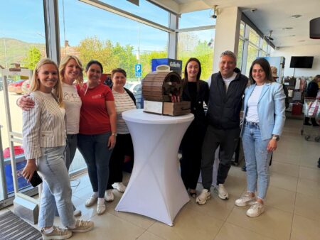 Као знак пажње и захвалности, запослени су власницима уручили посебан поклон – ручно израђен држач за вино, чији је аутор Дарко Јовановић, настао на иницијативу и уз заједничку идеју целог колектива. Овај симболичан гест осликава тимски дух и блиске односе који се негују унутар фирме. У име власника поклон је примио Владимир Лазић.